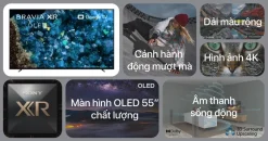 | Công nghệ hình ảnh | Chuyển động mượt XR OLED Motion Dolby Vision HDR10 HLG Tăng độ tương phản XR OLED Contrast Pro Nâng cấp độ phân giải XR 4K Upscaling Tăng cường màu sắc XR Triluminos Pro Giảm nhiễu XR Clear Image Tinh năng Game Menu Tính năng chơi game 4K 120fps Đồng bộ khung hình/tần số quét chơi game VRR Giảm độ trễ chơi game Auto Low Latency Mode (ALLM) |